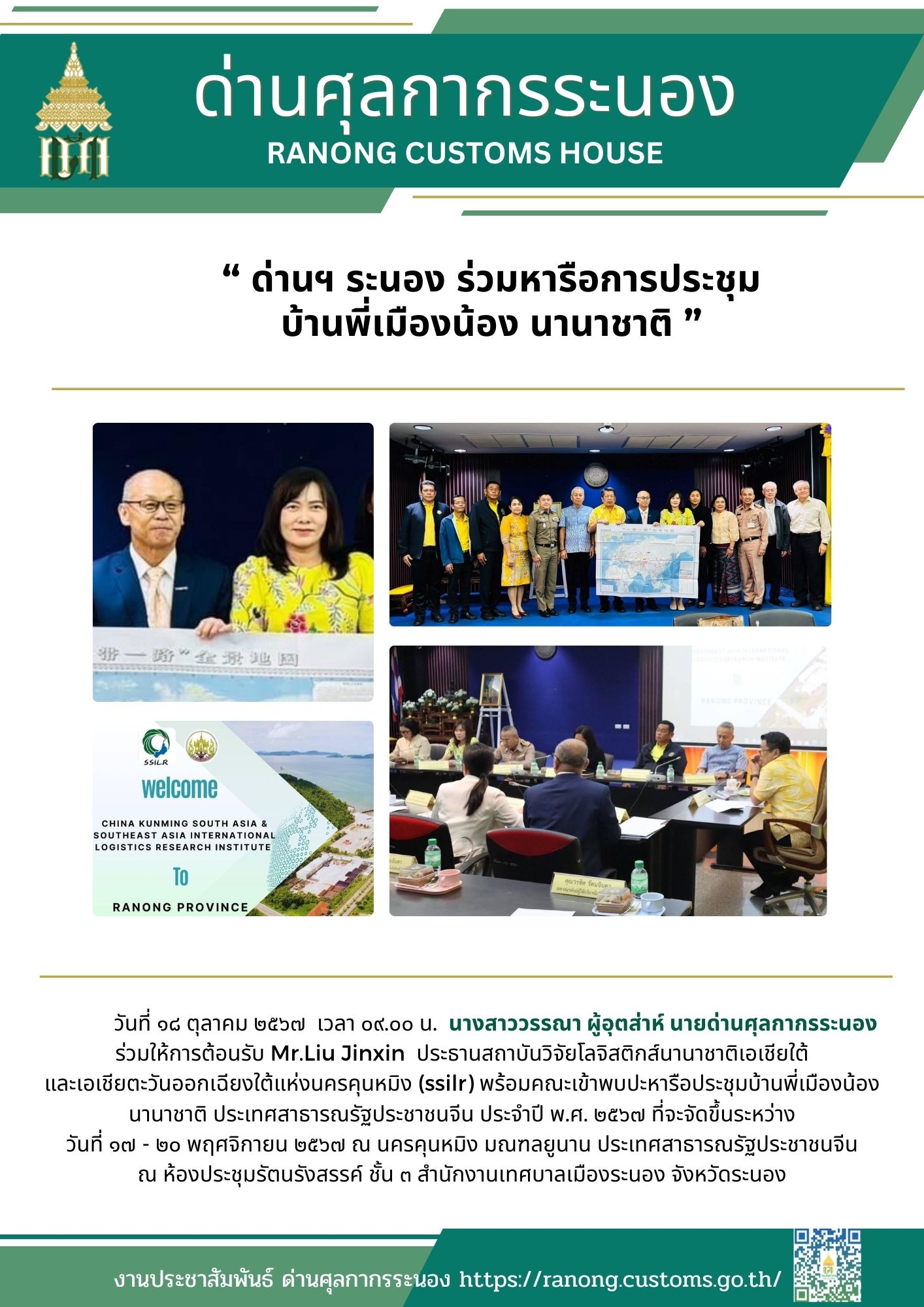 ด่านศุลกากรระนอง ร่วมหารือการประชุม บ้านพี่เมืองน้อง นานาชาติ