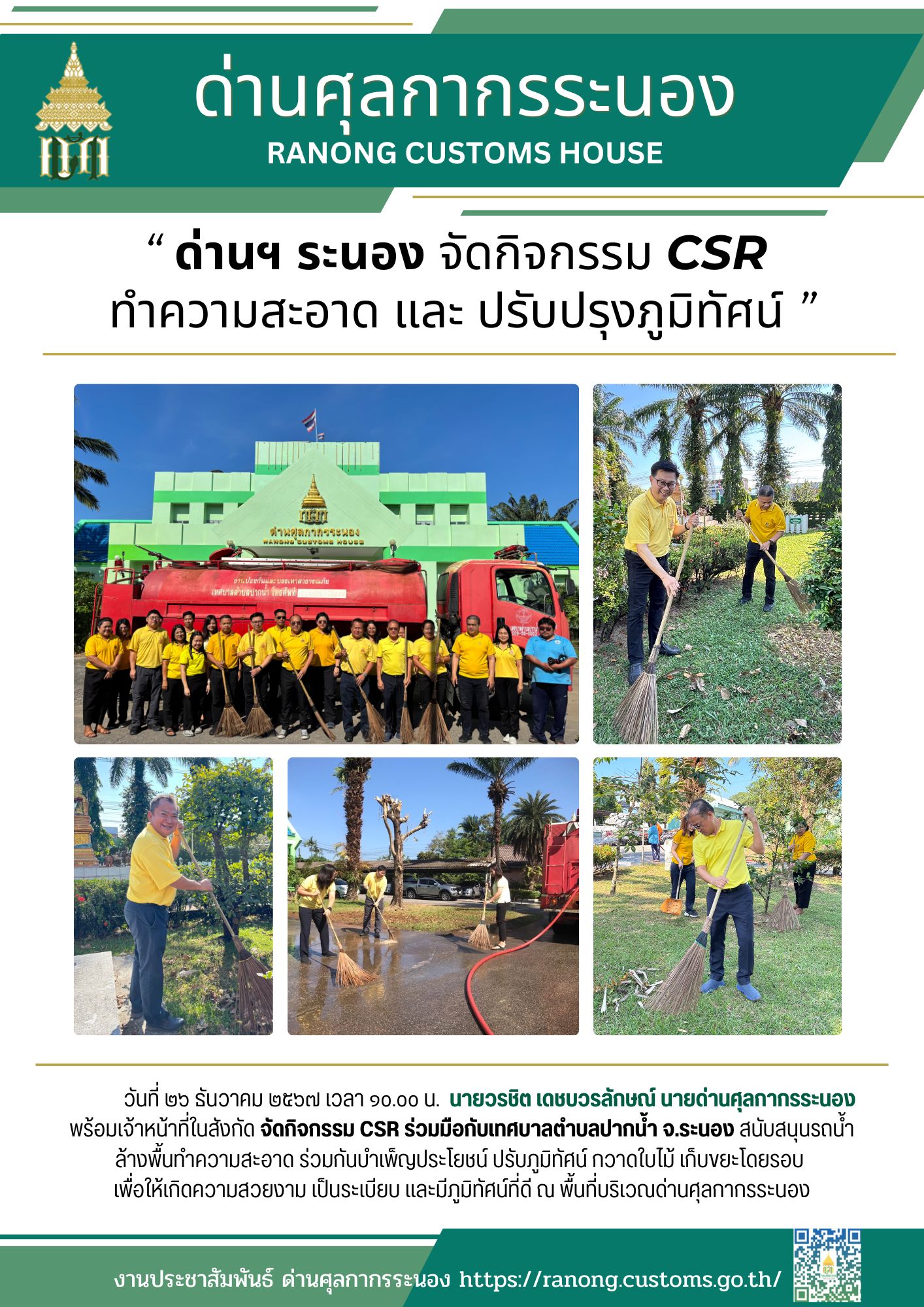 ด่านฯ ระนอง จัดกิจกรรม CSR ทำความสะอาด และ ปรับปรุงภูมิทัศน์