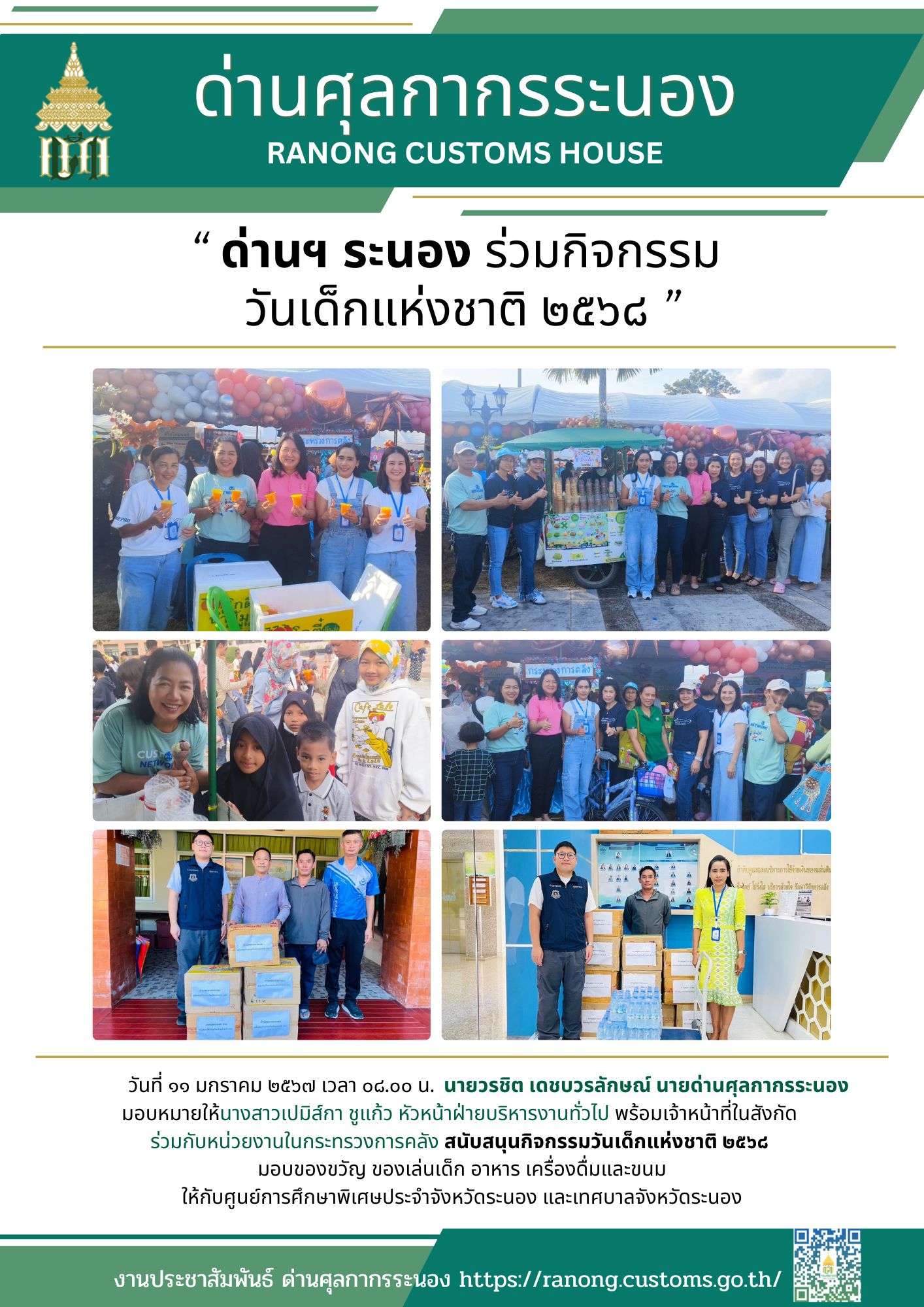 ด่านศุลกากรระนอง สนับสนุนกิจกรรม วันเด็กแห่งชาติ ๒๕๖๘