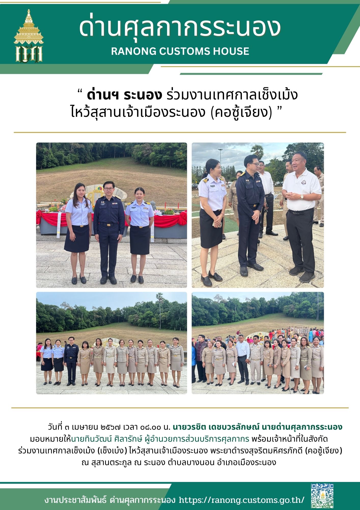 ด่านศุลกากรระนอง ร่วมงานเทศกาลเช็งเม้ง ไหว้สุสานเจ้าเมืองระนอง (คอซู้เจียง)
