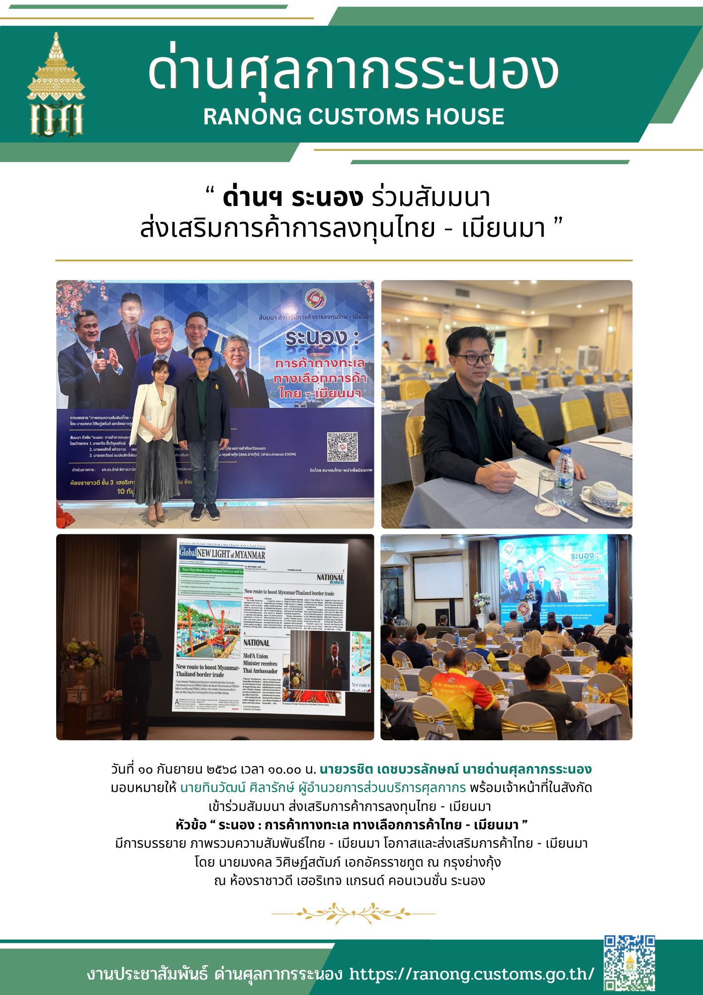 ด่านศุลกากรระนอง ร่วมสัมมนา ส่งเสริมการค้าการลงทุนไทย - เมียนมา