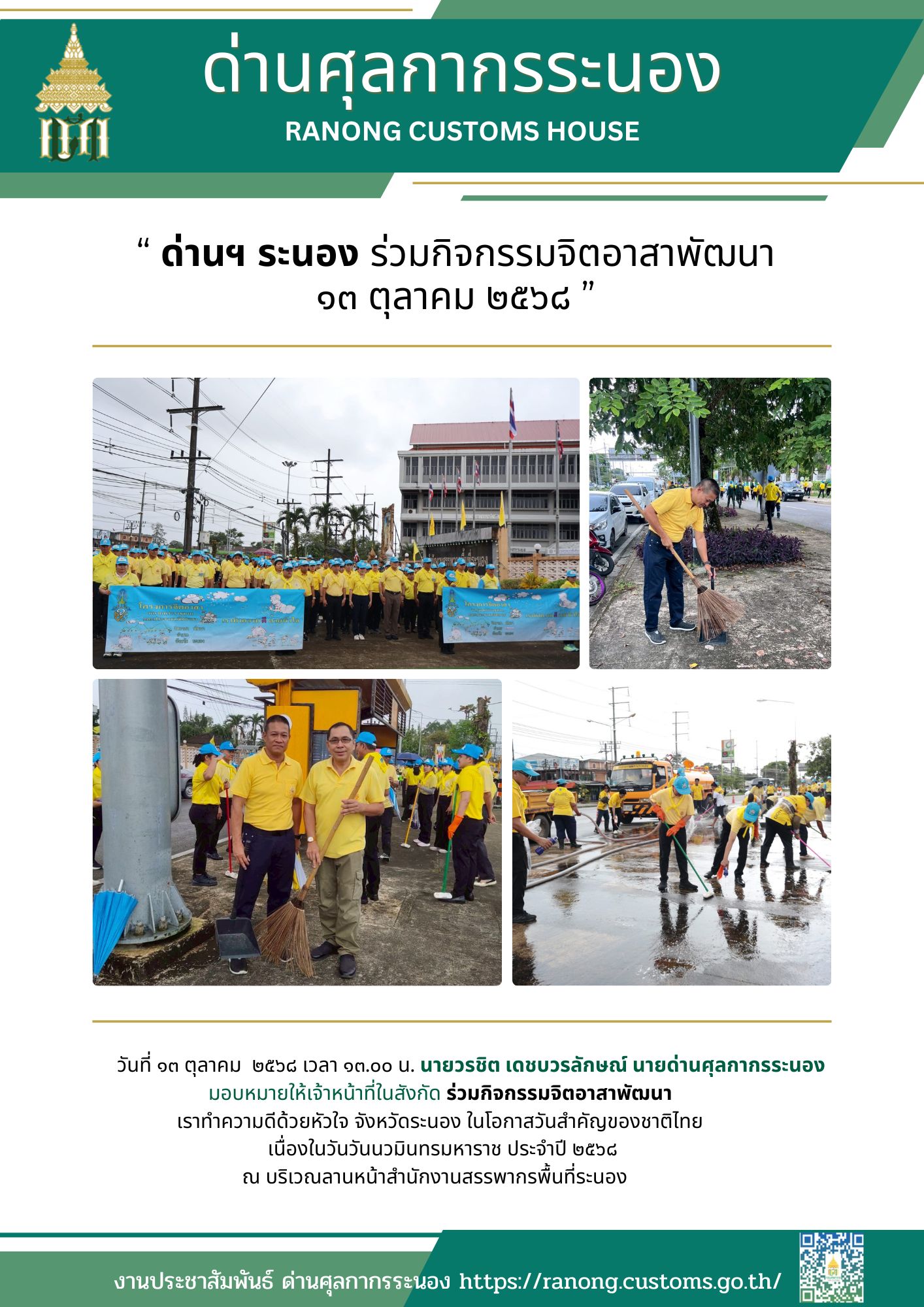 ด่านศุลกากรระนอง ร่วมกิจกรรมจิตอาสาพัฒนา ๑๓ ตุลาคม ๒๕๖๘
